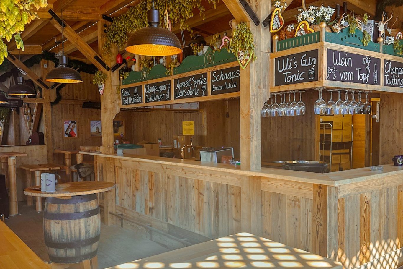 Neben einer unserer historischen Kegelbahn präsentieren wir Ihnen auch dieses Jahr unsere beliebte Bietsch-Bar. Hier läßt sich in ganz besonderer Atmosphäre ein Glas Prosecco oder Aperol-Spritz genießen. DER Geheimtipp auf der Wiesn 2025!